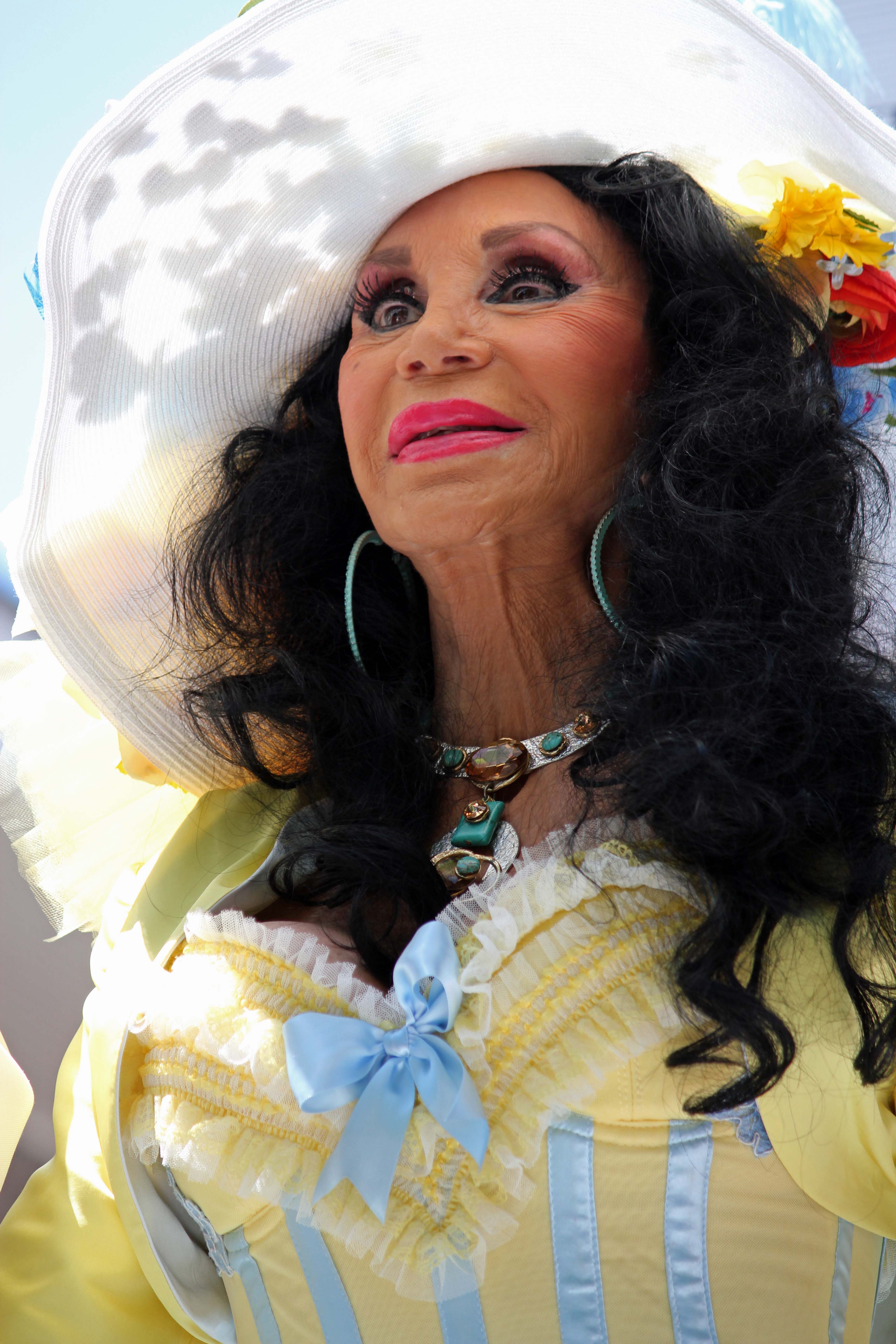 My new tatt is looking good but I must be careful to keep it out of the sun. William has presented me with my Easter Bonnet which I will wear when the second parade of the afternoon goes past our balcony. I mentioned before that New Orleans is a great city to people watch. Even more so today as the drag queens, the transvestites and the gays wearing all kinds of finery and matching bonnets are sashaying past. The Chris Owens parade rolls down Bourbon and then take a right onto St Anne which is just the next block up from us. Last year I missed this parade because I had the wrong start time. Not this year however as I am determined to get in on the fun.