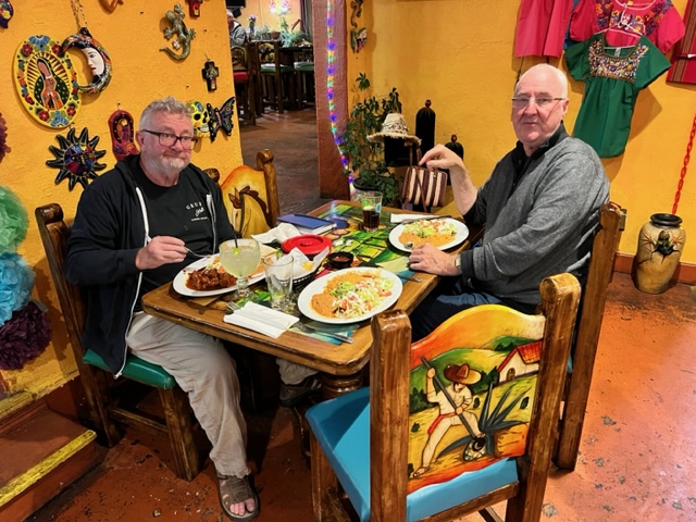 Dinner at Agave in Flagstaff, a well rated Mexican – a few dark ales and a burrito, an enchilada and a chilly for the boys – Wendy not 100% and stayed home. We do seem to spend a lot of time cleaning stains from our freshly changed clothing and the refried beans make their impact known under fluffy blankets all night. The place had done a great job with the Mexican regalia, a lovely waitress who did her job well, the food pretty standard fare.