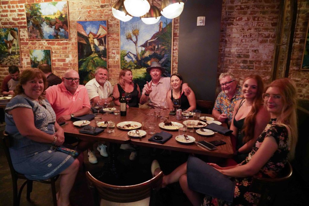 Back to the future ….. after another long, humid day, it’s straight back to Midway Pizza on Freret for a couple of pitchers of porter, spicy wings, pigs in blankets, and pizza. Our favourite waitress is on – she is delightful and plays the game with our banter. We have a glass of aged Pinot when we get home – had worse, had better, but at the A$45 price point expect more, the colour is on the turn…