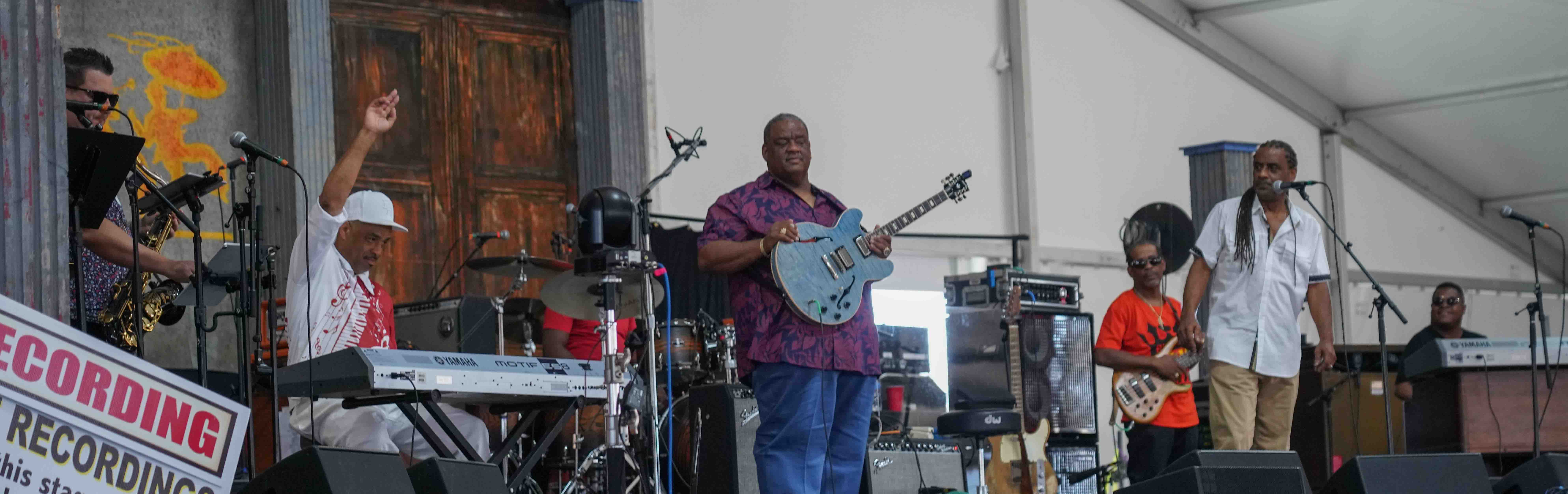 Next up is the 66-year-old Kenny Neal. It will be hard now to get Wendy’s attention as Kenny is her ‘golden child’! Kenny’s band consists mostly of family members. He is the consummate frontman, a great singer. guitarist and harp player. He always has a beaming smile. Front row is his mother and other family members. It is always a joyous feeling at a Kenny Neal show.
