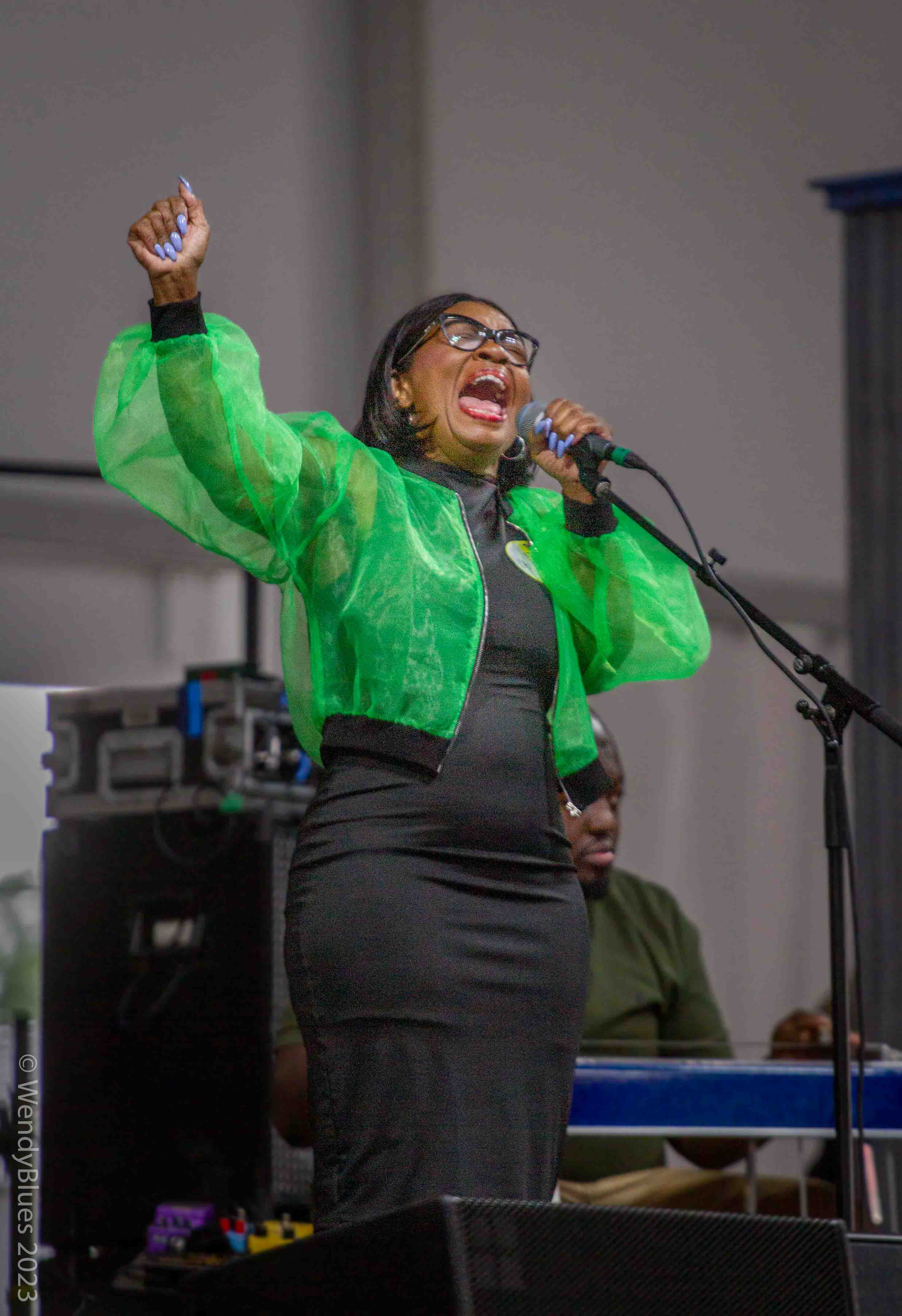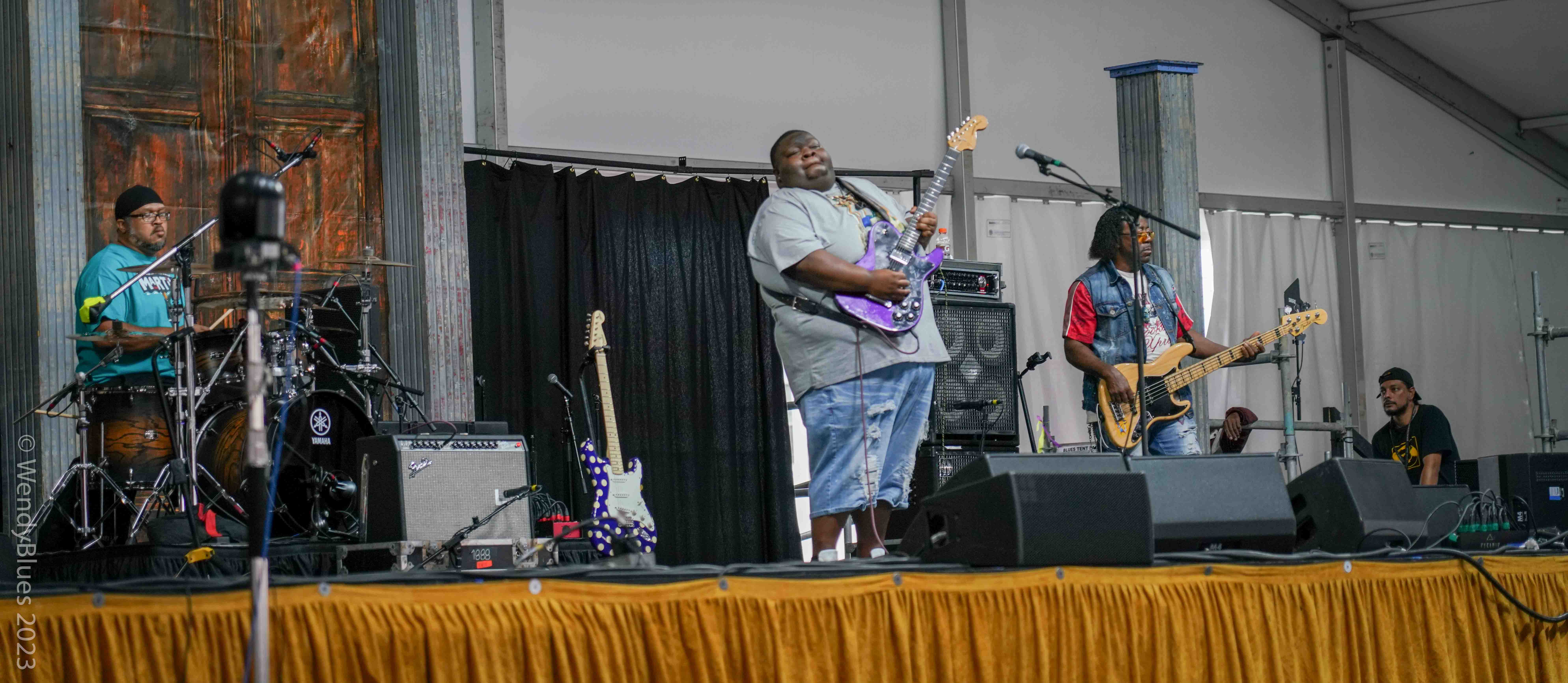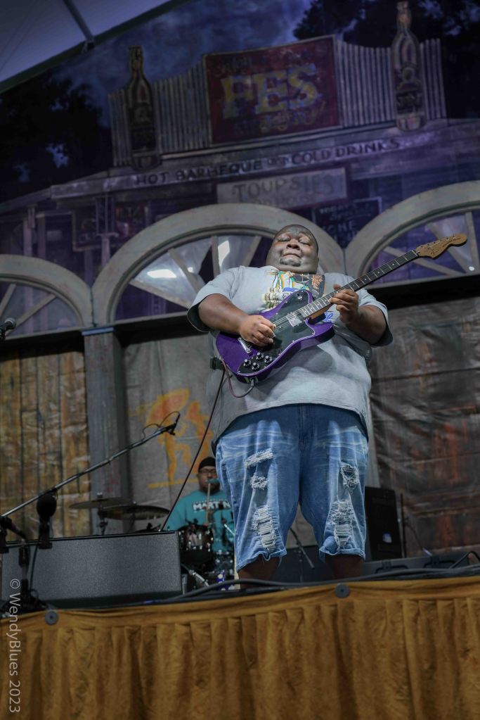 Next up is the 66-year-old Kenny Neal. It will be hard now to get Wendy’s attention as Kenny is her ‘golden child’! Kenny’s band consists mostly of family members. He is the consummate frontman, a great singer. guitarist and harp player. He always has a beaming smile. Front row is his mother and other family members. It is always a joyous feeling at a Kenny Neal show.