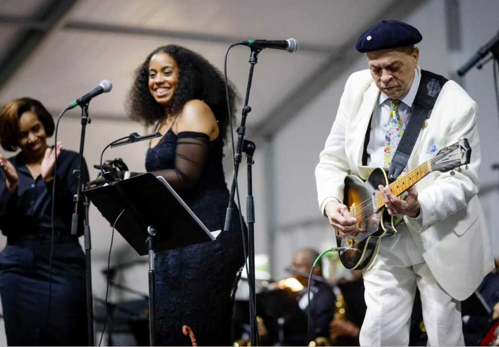 I caught the end of the tribute to Walter ‘Wolfman’ Washington. Walter was an institution in the music scene of New Orleans. He sadly died Dec of 2022. His photo now adorns the Blues Tent along with many other past legends. He was so revered in this town that a park is being renamed in his honor.