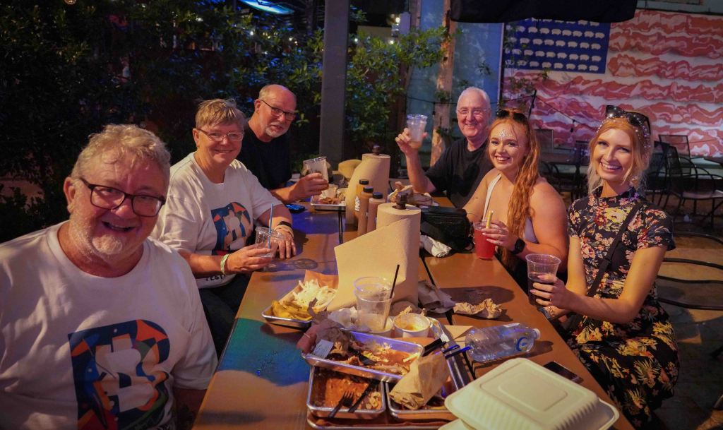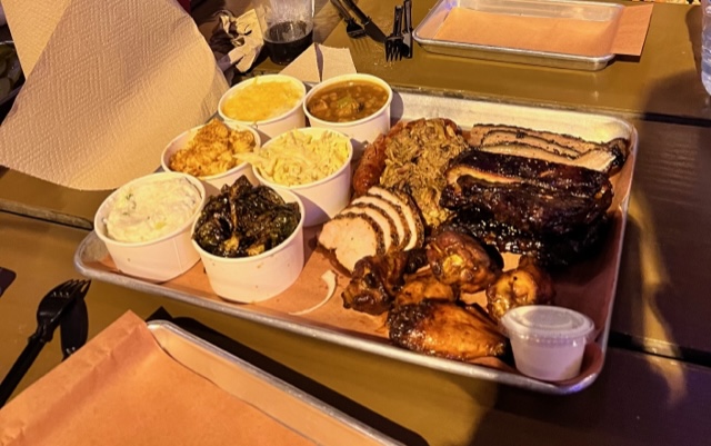 Pat dropped us off at the nearby Blue Oak BBQ where we met up with Hoff and Bernie. It took about half an hour to line up to order the food as the restaurant is packed with hungry festival people. The food did not take long to be delivered to our table. Cara ordered a family meal for the four of us to share (Wendy, Cara, Taylah, and me). We have no way of eating the amount of food that was delivered to our table! I hear the distinctive Aussie accent on the table next to us. Very interesting guy who is from Freemantle but has lived in Santiago for the last 20 years where he owns and operates an Airbnb